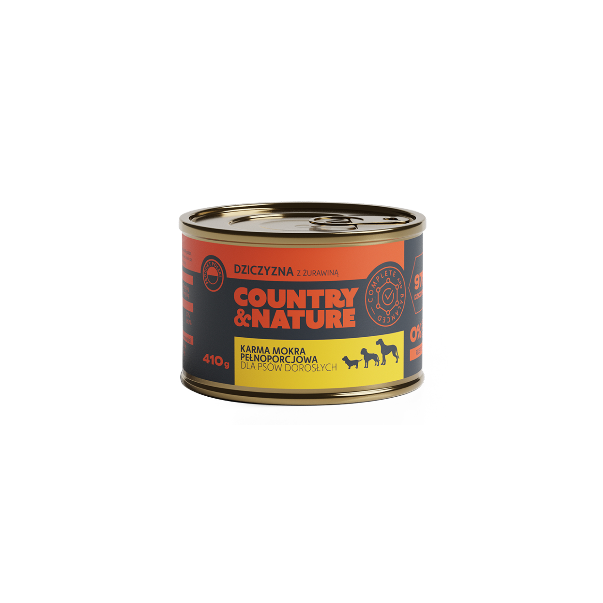 Karma mokra COUNTRY&NATURE to pyszna monoproteinowa karma jakości premium, na bazie dziczyzny z żurawiną dla dorosłych psów wszystkich ras w formie aromatycznego pasztetu w sosie własnym. Żurawina ma działanie przeciwstarzeniowe oraz