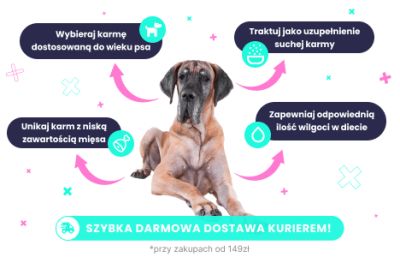 Mokra karma dla psa to doskonały wybór dla psów o wrażliwym układzie pokarmowym i problemach z uzębieniem. Jest też idealnym wyborem dla psów, które piją mało wody. Wysoka zawartość mięsa i naturalnych składników dostarcza niezbędnych białek i witamin. Nasza oferta jest bogata w mokre karmy dla psa w puszkach oraz saszetkach dla Twojej wygody. Wybieraj karmy wykonane z naturalnym składników i bez sztucznych dodatków. Sprawdź naszą ofertę i znajdź idealną mokrą karmę dla swojego psa!
