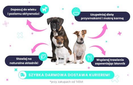 - Zadbaj o dopasowanie karmy do wieku i rasy psa.