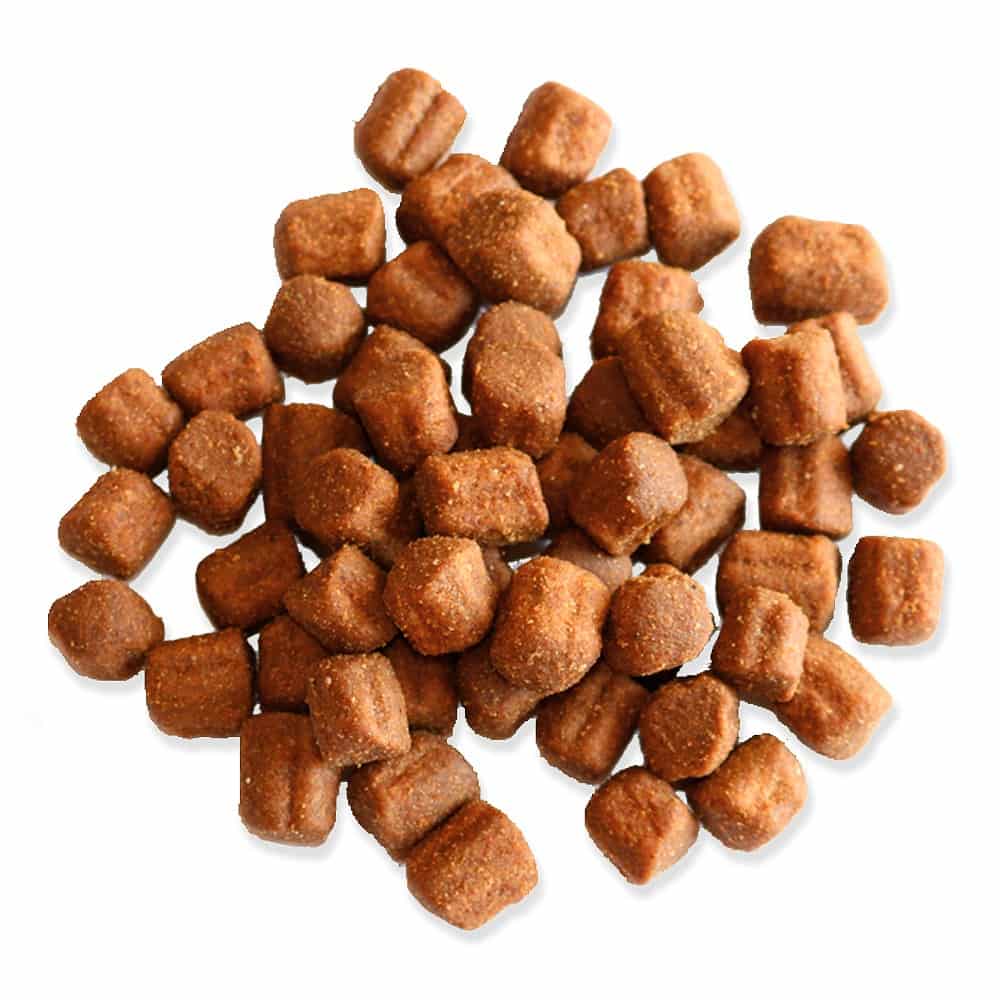 mięso (świeże mięso /drobiowe, wieprzowe, wołowe/ - 20%, suszone mięso drobiowe 21%, hydrolizowana wątroba wieprzowa 3%), pszenica, otręby pszenne, mąka pszenna, tłuszcz drobiowy, ryż, wysłodki buraczane suszone (z buraków cukrowych), drożdże piwne, olej z łososia (1%), diwodorofosforan dwuwodny, suszona miazga jabłkowa, zarodki pszenne, celuloza, korzeń cykorii (0,01%), juka (0,005%)