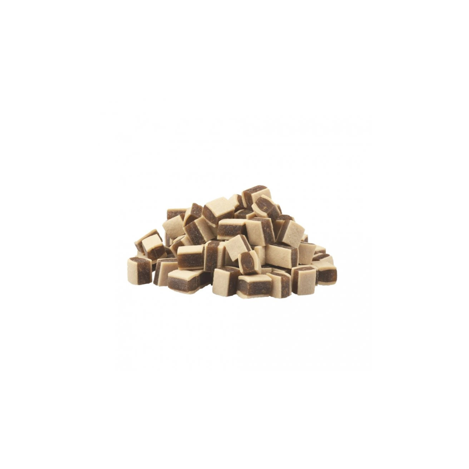 Fitmin For Life Dog&Cat Kosteczki o smaku kaczki i ryby to uniwersalny przysmak stworzony zarówno dla kotów, jak i małych psów. Dzięki starannie wyselekcjonowanym składnikom oraz delikatnej obróbce poprzez suszenie powietrzem, kosteczki zachowują swój naturalny aromat i wyjątkowy smak, który zadowoli nawet najbardziej wymagające podniebienia.Przysmak zawiera wysoką ilość białka (21%) pochodzącego z mięsa kaczki i ryby (49%), co wspiera zdrowie, witalność oraz kondycję sierści i skóry zarówno kotów, jak i psów. Bezzbożowa formuła czyni go odpowiednim dla zwierząt z wrażliwym układem pokarmowym, a dodatek białka grochu i gliceryny roślinnej zapewnia odpowiednią strukturę oraz lekkostrawność.