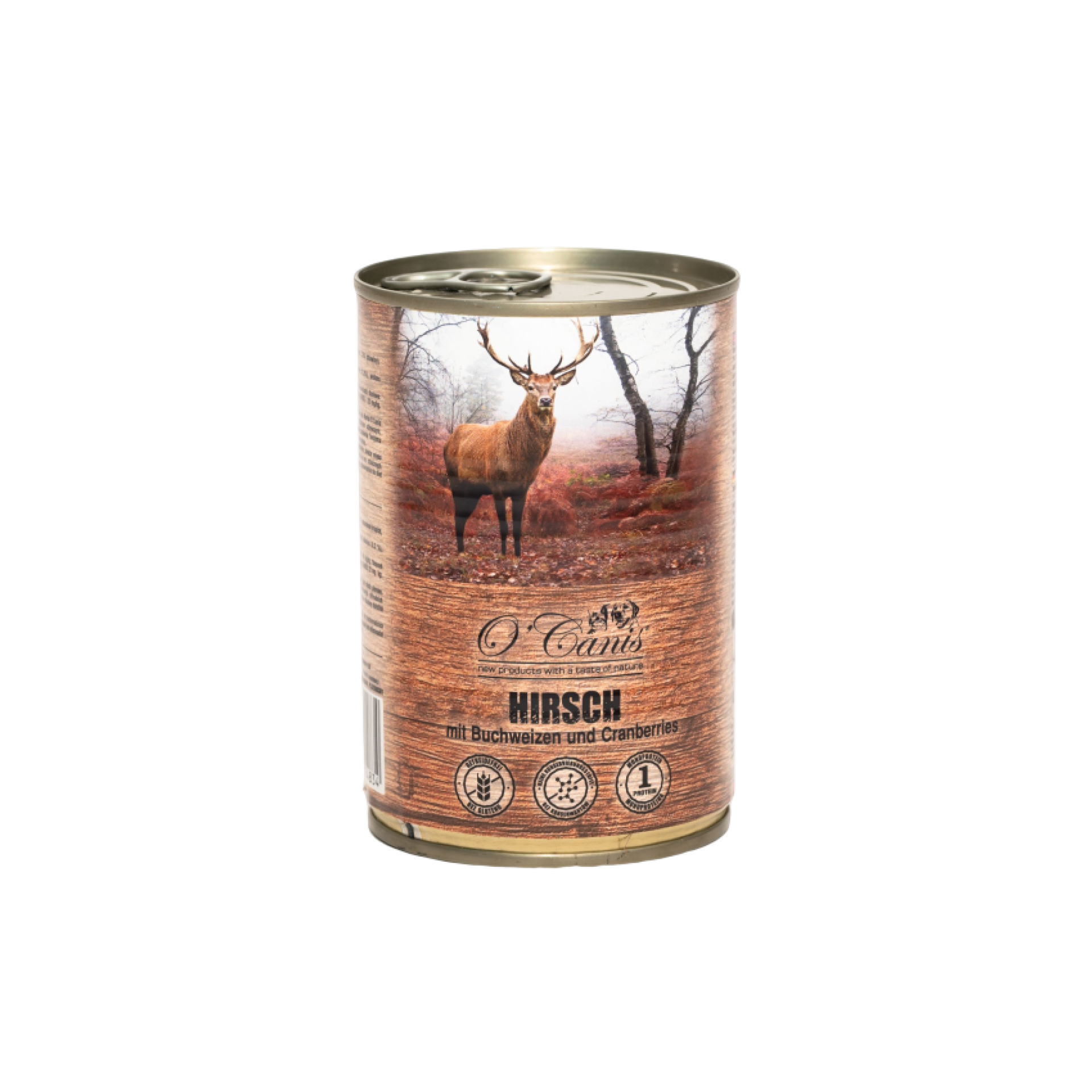 Karma mokra O'Canis to pyszna karma jakości premium, w sosie własnym ze świeżym mięsem, na bazie jelenia z kaszą gryczaną, żurawiną i porem dla psów w każdym wieku. Delikatna obróbka, powoduje, że karma jest wyjątkowo niedrażniąca, gwarantuje wysoki poziom tolerancji i łatwość trawienia, jest to świetne rozwiązanie dla psów z nietolerancją pokarmową.