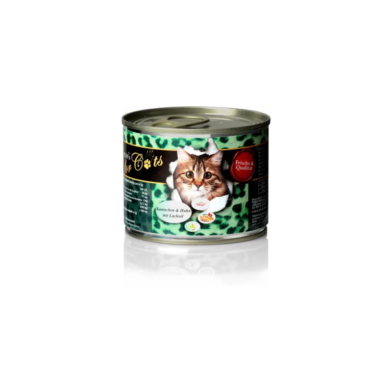 O'Canis for Cats Królik z Kurczakiem to kompletna, wysokiej jakości mokra karma dla kotów, stworzona z naturalnych składników. Karma nie zawiera sztucznych aromatów, konserwantów, ulepszaczy ani substancji wabiących, co zapewnia zdrowe i bezpieczne żywienie Twojego kota.Dzięki delikatnej obróbce, karma jest wyjątkowo niedrażniąca, gwarantując wysoki poziom tolerancji oraz łatwość trawienia. Wysoki poziom dostępności biologicznej oznacza, że Twój kot potrzebuje mniejszej ilości karmy, aby zaspokoić swoje potrzeby żywieniowe. Karma O'Canis for Cats jest produktem w sosie własnym, przygotowanym ze świeżego mięsa, co sprawia, że jest idealnym wyborem dla kotów w każdym wieku.