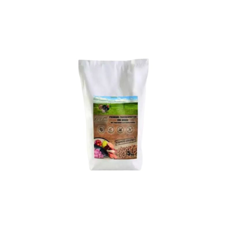 Pełnoporcjowa sucha karma O'Canis premium z mięsem indyczym, słodkim ziemniakiem i burakiem to bardzo dobrze strawna karma dla dorosłych psów wszystkich ras. Poddana procesowi pieczenia, dzięki czemu nie dodaje się do niej żadnych sztucznych dodatków czy tłuszczy, jest bezzbożowa i bezglutenowa.