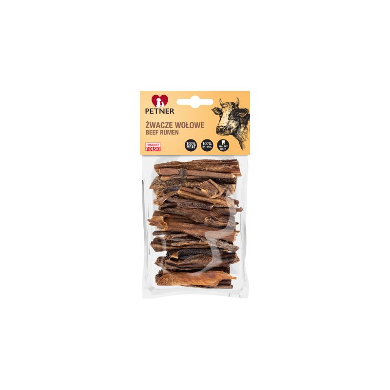 Żwacze wołowe Petner to bogaty wartościowe kultury bakterii gryzak wspierający procesy trawienne, mający dobry wpływ na apetyt oraz stymulujący florę jelitową, zapobiegając nawracającym