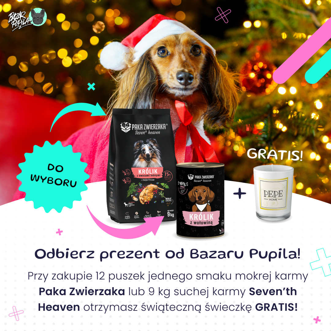 PAKA ZWIERZAKA Wołowina i śledź 400g karma mokra dla psów Naturalna pełnoporcjowa karma mokra PAKA ZWIERZAKA to pyszna karma jakości premium, na bazie wołowiny i śledzia dla psów w każdym wieku. Mięso wołowe jest świetnym źródłem białka bogatego w aminokwasy, witaminy i minerały. Dostarcza psu wielu wartości odżywczych, co ma pozytywny wpływ na prawidłową budowę masy mięśniowej, wygląd skóry oraz budowę kośćca Twojego pupila. Mięso ze śledzia to bogactwo dobrze przyswajalnego i pełnowartościowego białka. Jest świetnym źródłem bogatego w egzogenne aminokwasy białka. Ryba zawiera zdrowe tłuszcze, głównie nienasycone kwasy tłuszczowe Omega 3, które mają świetny wpływ na zdrowie psa. Karma w swoim składzie nie zawiera konserwantów, cukru, zbóż, soi ani żadnych barwników. To 100% naturalnych składników i 98% zawartości świeżego i soczystego mięsa, podrobów i bulionu. Puszki zachwycą swoim smakiem nawet wyszukane podniebienie Twojego pupila.Skład karmy dla psaWołowina i śledź 98,4% (w tym dzik mięso i podroby 50%, rosół wołowy 28,4%, śledź 20%), Minerały i witaminy 1%, olej z łososia 0,5%, nowozelandzka małża zielona 0,1%Analiza składu karmy dla psa Białko surowe 10,5%Tłuszcz surowy 8,3%Popiół surowy 2,7%Włókno surowe 0,4%Wilgotność 74% Opakowanie puszka 400g