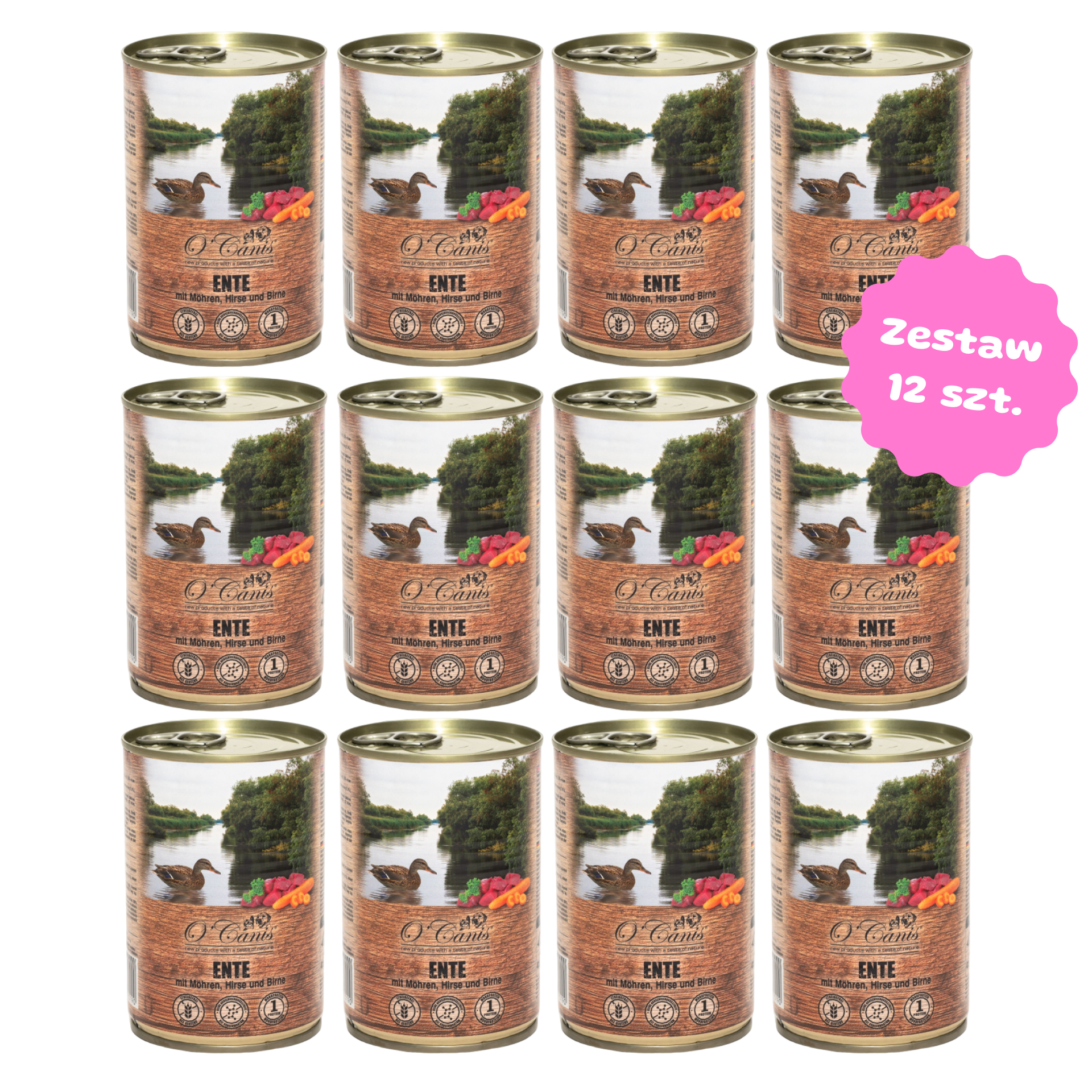 Zestaw 12 puszek karmy -O'Canis kaczka z marchewką, prosem i gruszką