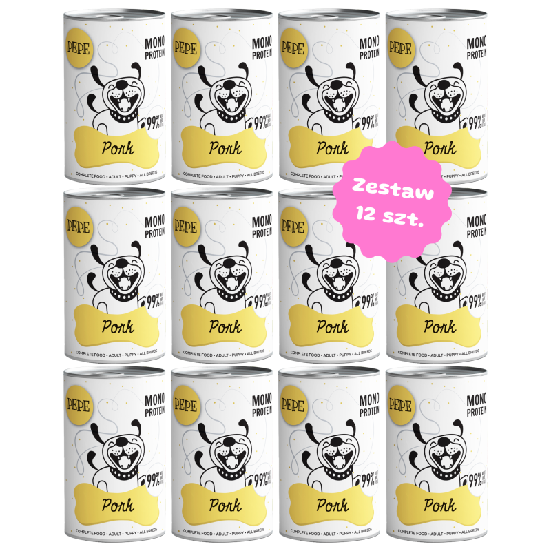 Zestaw 12 puszek karmy monoproteinowej - PAKA ZWIERZAKA PEPE MONO PROTEIN wieprzowina
